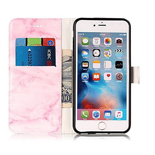 iPhone 6S ケース 手帳型ケース,iPhone 6 ケース 財布型ケース,SKYMARS 高級 PUレザー 保護ケース 財布型 バタフライ カバー 液晶保護 カード収納 スタンド機能 マグネット開閉式 ストラップ付き iPhone 6 / 6S 4.7 inch ケース 保護カバー Pink Marble