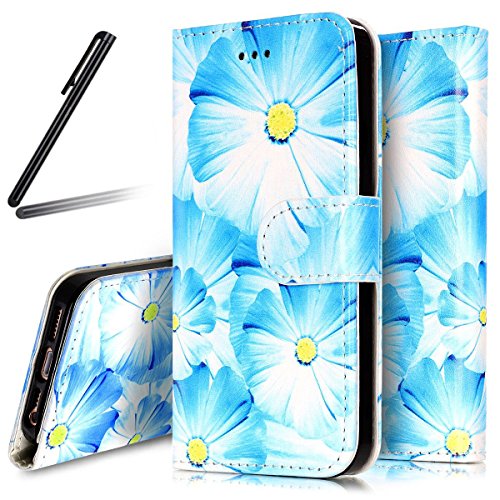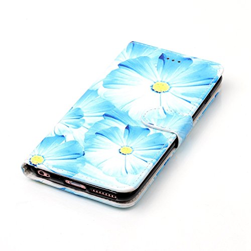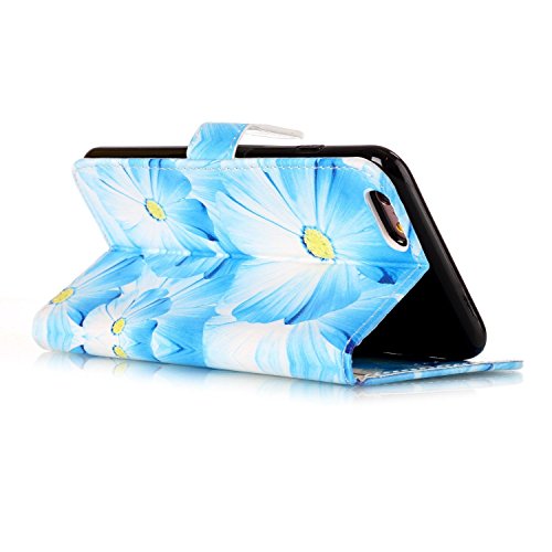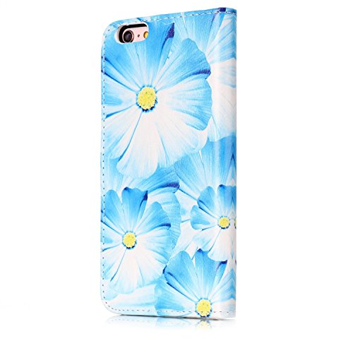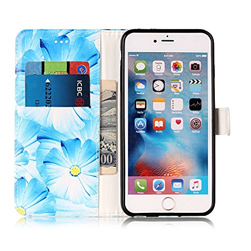 iPhone 7 ケース 手帳型ケース,iPhone7 ケース 財布型ケース,SKYMARS 高級 PUレザー 保護ケース 財布型 バタフライ カバー 液晶保護 カード収納 スタンド機能 マグネット開閉式 ストラップ付き iPhone 7 4.7 inch ケース 保護カバー Blue Flower