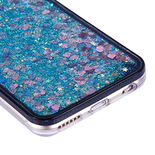iPhone 5 ケース,iPhone SE 流れる 液体 ケース,iPhone 5S カバー,SKYMARS TPU素材 流れる フローティング ラグジュアリー グリッター ス バンパー ケース iPhone 5 / 5S / SE カバー Blue Love Heart