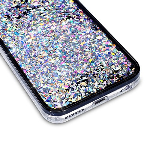 iPhone 5 ケース,iPhone SE 流れる 液体 ケース,iPhone 5S カバー,SKYMARS TPU素材 流れる フローティング ラグジュアリー グリッター ス バンパー ケース iPhone 5 / 5S / SE カバー Silver Diamond: