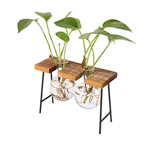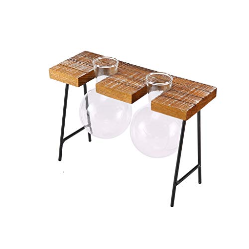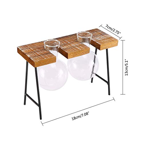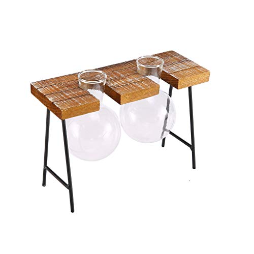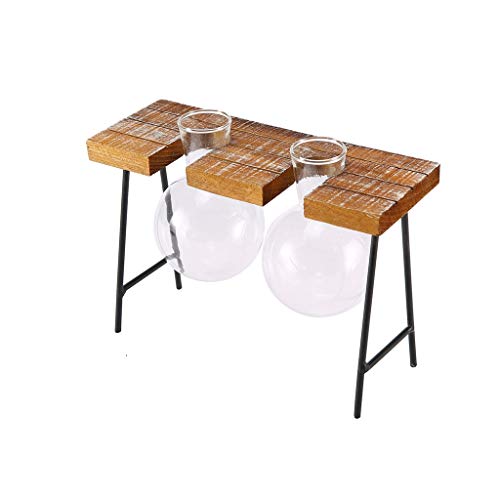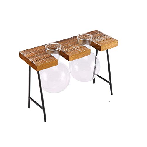 SM SunniMix ガラスの花瓶 水耕栽培 工芸品 木製枠 フラスコ型 卓上花瓶 花器 革新的 インテリア飾り 全3種 - ダブルボトル