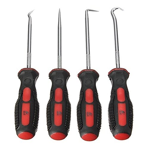 4ピース精密ピックとフックセット 車のフックとピックセット、車のオイルシールスクリュードライバ(4pcs,赤+黒)