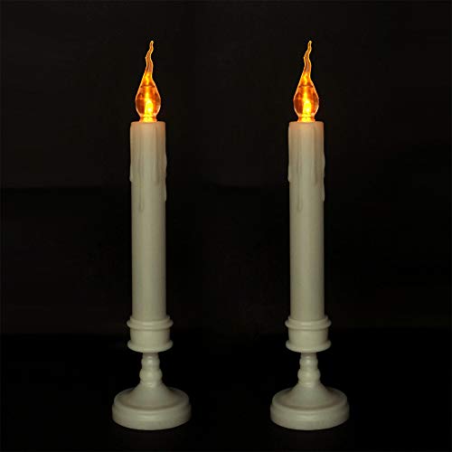 2本セット LEDキャンドルライト テーパキャンドル 電池式電子スリムLEDちらつきキャンドル フェイクテーパキャンドル、ウェディングパーティーハロウィーン感謝祭 – 電池含まない (M)