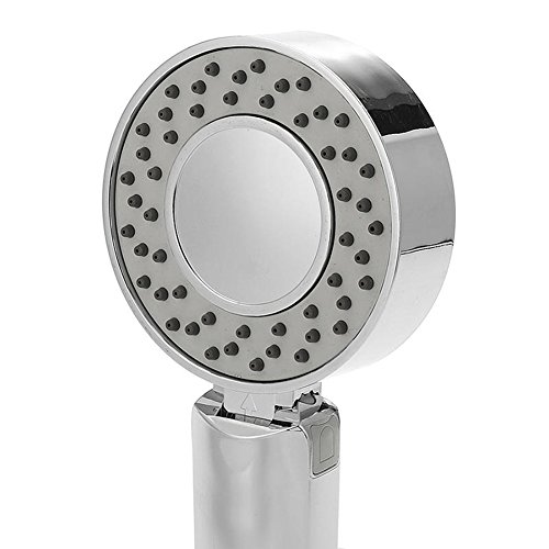 両面シャワーヘッドウォーターセービングラウンドABSクロームブースターバスシャワー高圧ハンドヘルドハンドシャワー(シルバー)