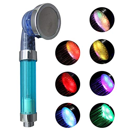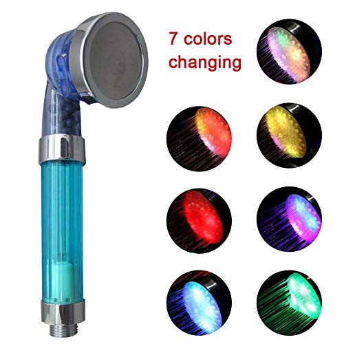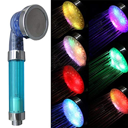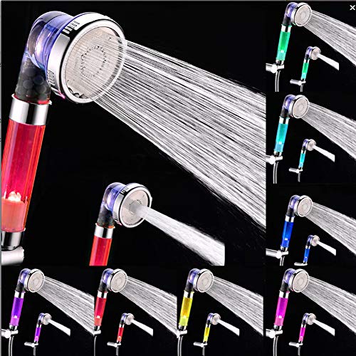 シャワーヘッド 節水 カラー変更 温度により色が変わる 虹色の水流が楽しめる スパ調節可能な耐腐食性LED負イオンシャワーヘッド(カラフル)