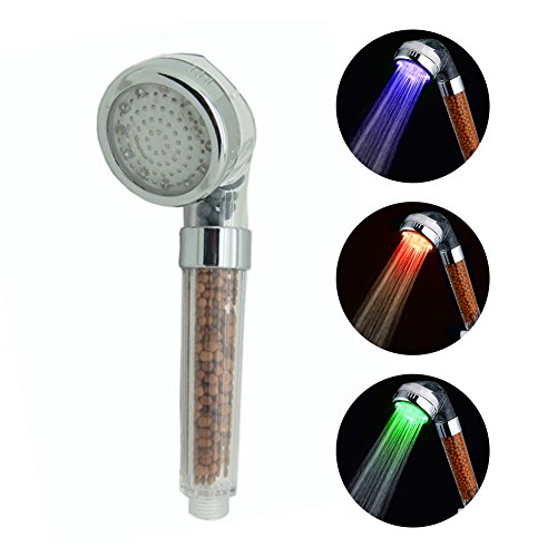 シャワーヘッド 節水7色LEDカラフルなアニオンホームハンドヘルドシャワーヘッド 塩素除去 高水圧 LEDライト式耐久性加圧(L,3色)