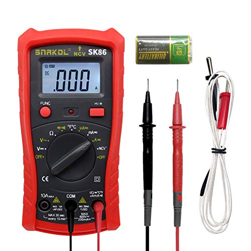 デジタルマルチメーター SNAKOL テスター DC/AC電圧・DC/AC電流・抵抗・温度・導通チェック・ダイオードテスター搭載 NCV非接触電圧測定 過負荷保護 小型工業計測器 電子計測機器 バックライト付き 日本語説明書 一年保証付き (レッド)