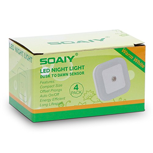 SOAIYスマートDawn to Dusk on / offセンサープラグのLED Night Light withオフセットプロング、壁ライトfor Kids部屋、廊下、バスルーム、階段、ウォームホワイト、4パック