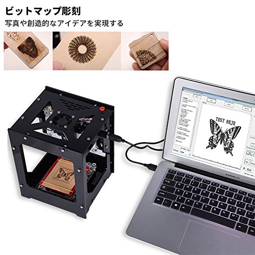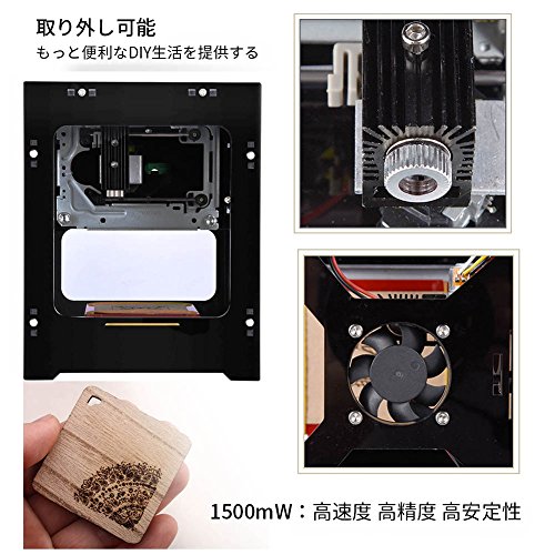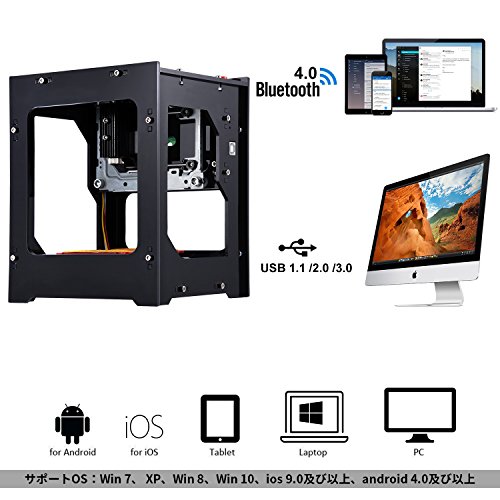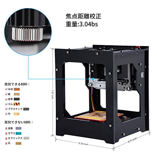 - 【高速度・高精度・高安定性】mWという単位はジェネレータが単位時間当たりの定格時間にの発電量を表示します。1000mWの商品と比べると、こちらのレーザー彫刻機は1500mWで、一定の時間により多くのパワーを送って、もっと綺麗に彫刻でき、高速度・高精度・高安定性等の機能揃っています。この新しく導入された彫刻で適用される革新的な技術、無線ブルートゥースと USB ケーブル接続の両方をサポートしています。CD付きなので、使用方法を全て解説できます。
