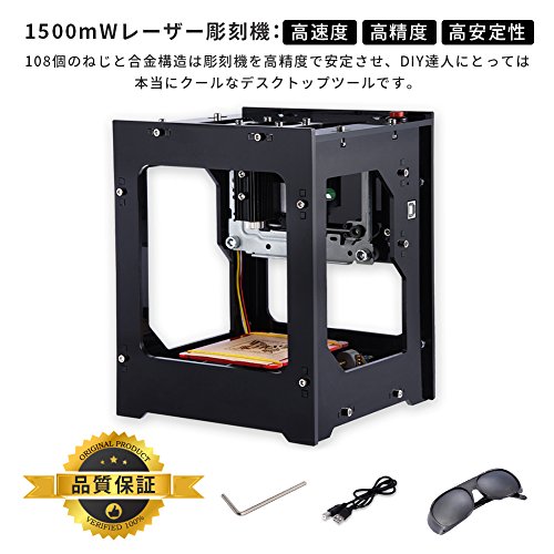 【1500mW レーザー彫刻機】レーザーDIY彫刻機 小型レーザー加工機 プリント彫刻機 DK-BL 卓上 軽量 レーザープリンタ DIY道具 加工機 印鑑制作 保護メガネ付き 取説CD付き windows対応 品質保証