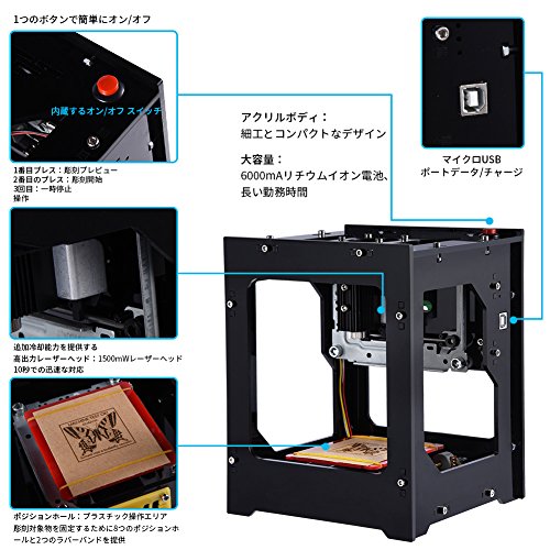 - 【簡単に操作】レーザー出力:1500mW 本体:16×14.5×20cm 加工範囲: 42x42x78mm 。6000mAhポリマーリチウムイオン電池付き、ケーブルを繋ぐ必要はなし、いつでもどこでもオフラインで操作可能、生活に便利な物です。