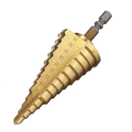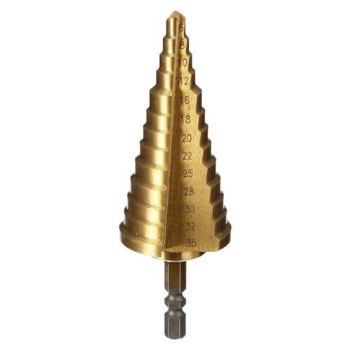 ドリル,SODIAL(R)6-35MMメッキHSS13ステップコーンドリルビットチタンホールカッター 六角シャンクスチール