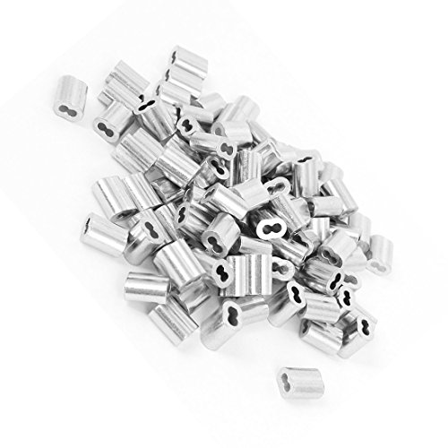 ワイヤーロープアルミスリーブ,SODIAL(R) 1/16インチワイヤーロープアルミスリーブ継手ケーブルクリンプクリップ x100