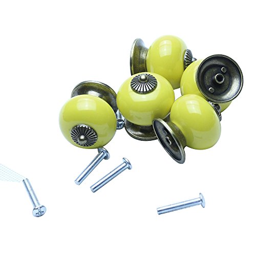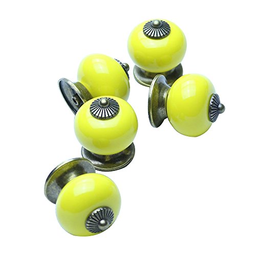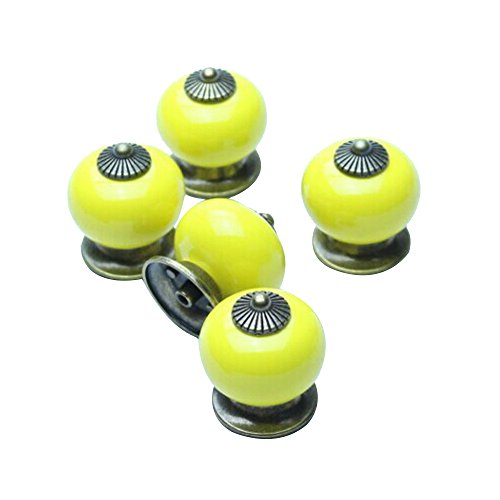 SODIAL(R)クリニークヨーロッパセラミックドアノブキャビネット引き出し家具食器棚のプルハンドル(黄色)