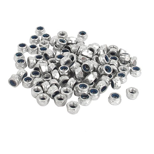 M4ナイロンロックナット,SODIAL(R) M4x0.7mm 亜鉛めっき ナイロン挿入六角ロックナット シルバートーン 100件