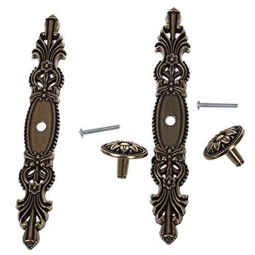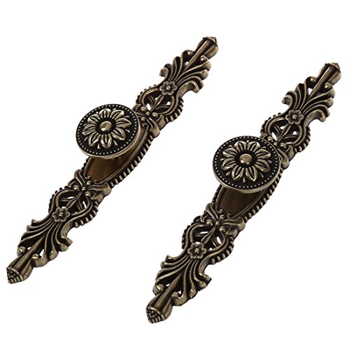 SODIAL(R)2個 165ミリメートル アンティークブロンズ フラワー キャビネットハンドル コンパートメント ワードローブ ドア プル ハンドル