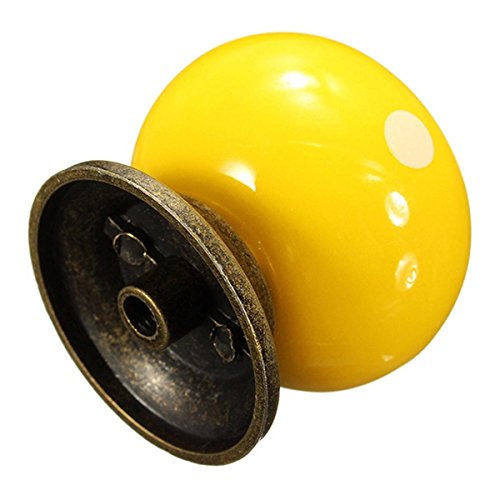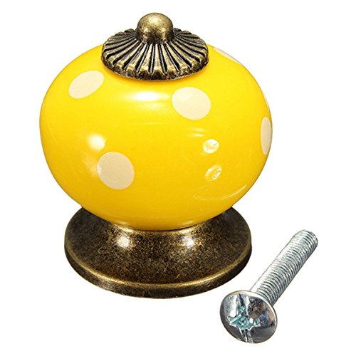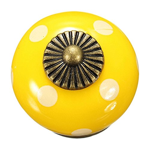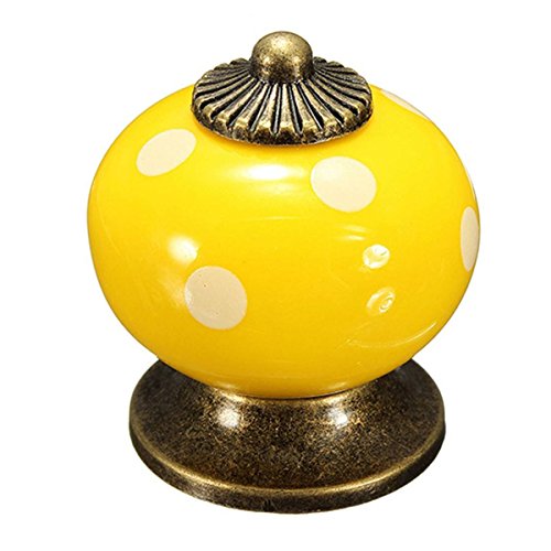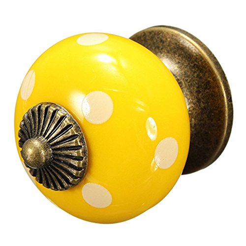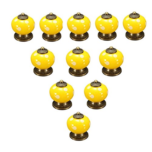 SODIAL(R) 10個 レトロポルカドットセラミックドアノブキャビネット 食器戸棚引き出しロッカーハンドル イエロー