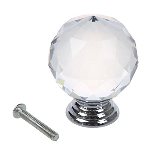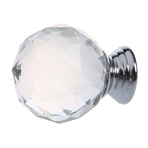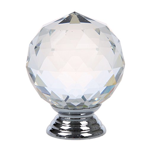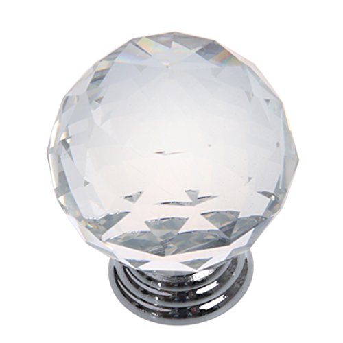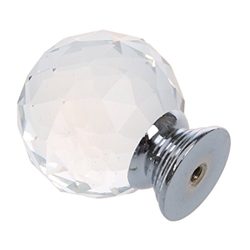 SODIAL(R) クリアラウンド クリスタルガラスキャビネット 引き出し、ドアのプル ノブ、ハンドル 40mm