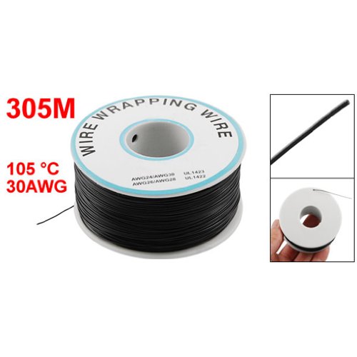 SODIAL(R)P/N B-30-1000 30 AWG錫メッキ銅ワイヤーラッピングケーブルリールブラック305M