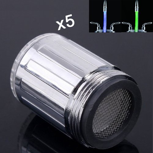 SODIAL(R) 5 PCS 7RGB色自動変更LEDライト水流蛇口タップ