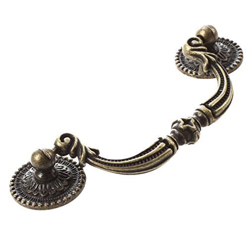 SODIAL(R) アンティークブラスキャビネット ドア引き出しハンドル 100 mm
