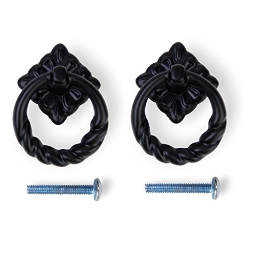 SODIAL(R)2xビンテージキッチン キャビネット カップボード 引き出しドレッサープル ハンドルノブ---マットブラック