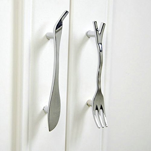 SODIAL(R)1 x フォーク形のトラクションハンドル キッチンキャビネット 引き出し用 クリエイティブ 76mm -シルバー