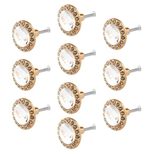 SODIAL(R) 10個 クリスタルガラスクリアラウンド プルハンドル グリッターラインストーンノブ 戸棚引き出し用 ゴールド