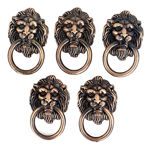 SODIAL(R) 戸棚 キャビネット 引き出し ヴィンテージ ライオンヘッド リングプル ノブ ハンドル 5件