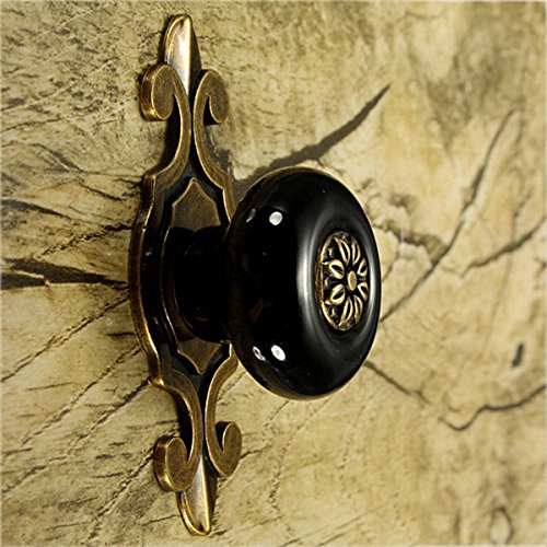 SODIAL(R) ヴィンテージセラミックドアノブ引き出し キャビネット衣装ワードローブ プルハンドル ブラック+ブロンズ