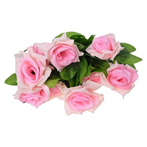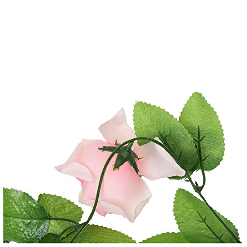 SODIAL(R) 人工ライト ピンクローズ葉っぱ ヴァインズガーランド植物 家の装飾 ガーデン