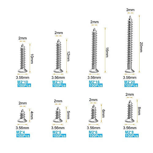 SODIAL(R) 800個 ステンレススチールセルフタッピング ネジアソートメントキットロックナット 木ネジネイルスクリューセット M2