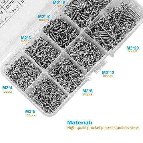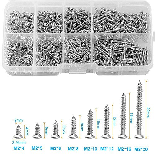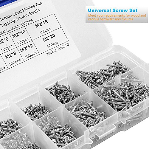 SODIAL 800個 ステンレススチールセルフタッピング ネジアソートメントキットロックナット 木ネジネイルスクリューセット M2