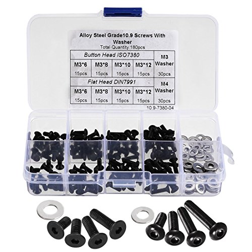 SODIAL 180ピース合金スチールM3六角ソケットボタンヘッド皿頭スクリューM3 M4ワッシャーアソートメント