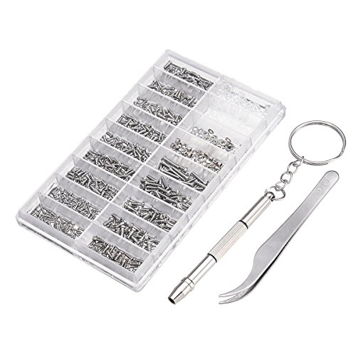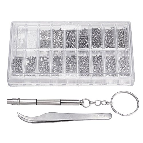 SODIAL 1000個の眼鏡ネジナットアソートメント+ 1つのPCのドライバー+ 1つのPCのピンセット、眼鏡修理キットスクリュー腕時計/眼鏡/サングラス/眼鏡のための光学式修復ツールセット