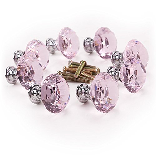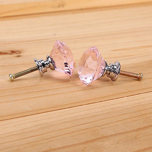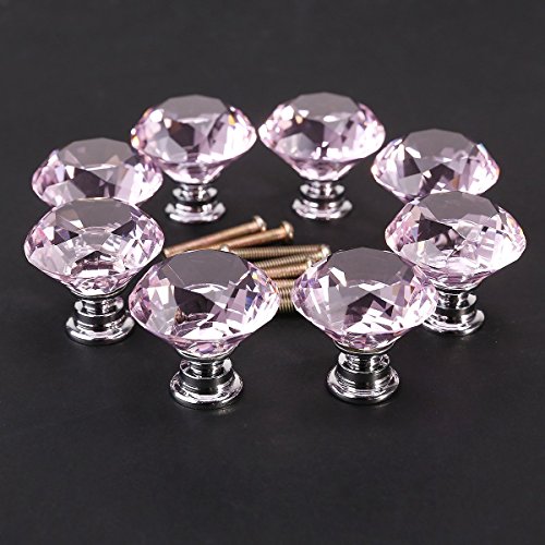 SODIAL(R)8 x ピンク ダイヤモンドブリンブリン装飾 ドア、家具、引き出しハンドルノブ 30x27mm