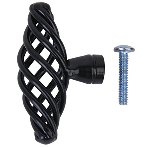 SODIAL(R)1 xビンテージスパイラルケージ設計 キッチンキャビネット 食器棚ハンドルノブ---黒