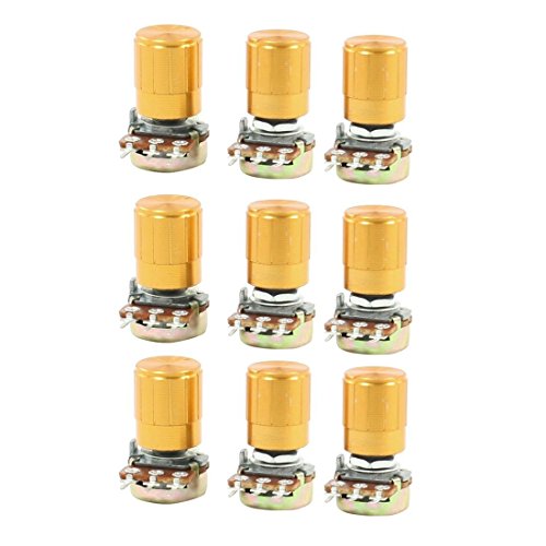 9個50Kオーム3ピン6ミリメートルスプリットシャフト回転リニアテーパポテンショメータノブ付き