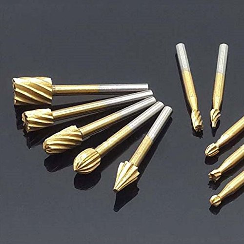 SODIAL 10個 チタン粉砕ロータリーファイル 木彫り彫刻ナイフカッターツールアクセサリー + ロケータ位置ホーン