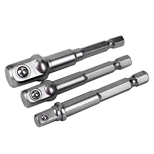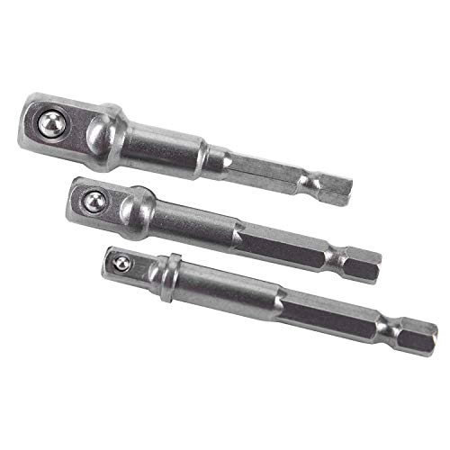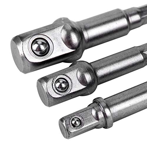 SODIAL 3本 / セット 1/4インチ3/8インチ1/2インチHexパワードリルドライバソケットレンチアダプタ延長バービット65-72mm