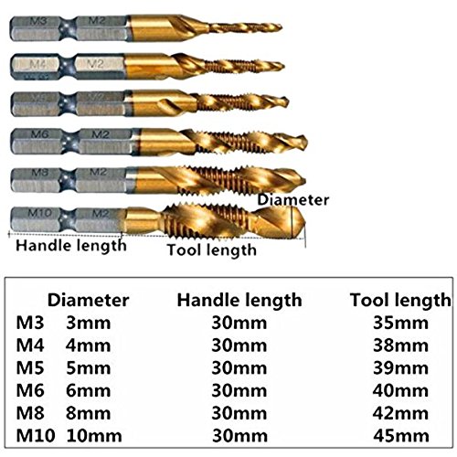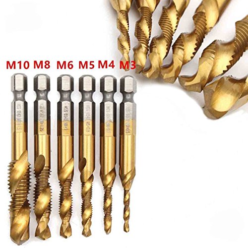 SODIAL 6xHSSチタンM3 - M10コンビネーション六角ダボールカウンターシンクタップドリルビットセット