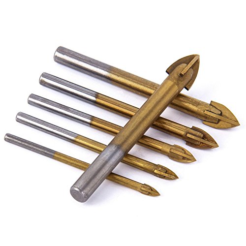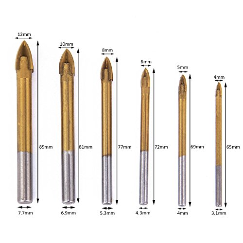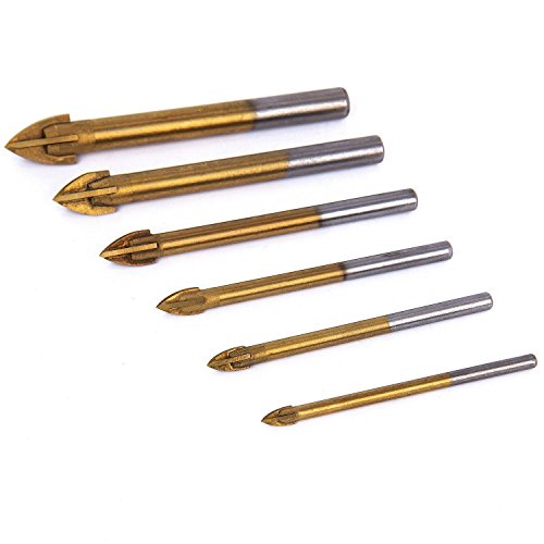 SODIAL 6xチタンコーティングガラスドリルビットセット 4つの切断エッジクロススピアヘッドドリル 六角シャンク付き セラミックタイル大理石ミラーとガラスの為