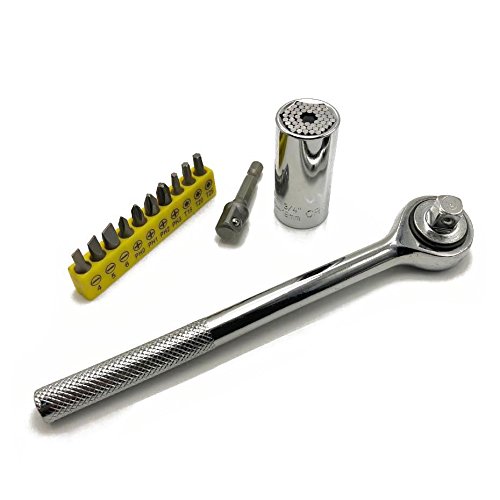 SODIAL ユニバーサルラチェットレンチ修理ツール7-19mmハンドル+ Cle +コネクティングロッド+ドリルアダプター