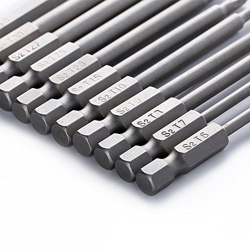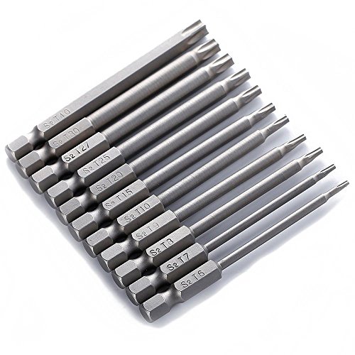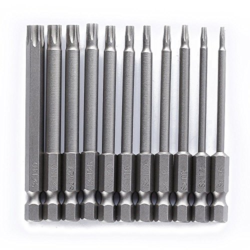 SODIAL 11ピースの1/4インチのヘックスシャンクT6-T40 4インチの長さ S2スチールトルクスセキュリティヘッドドライバードリルセットビット