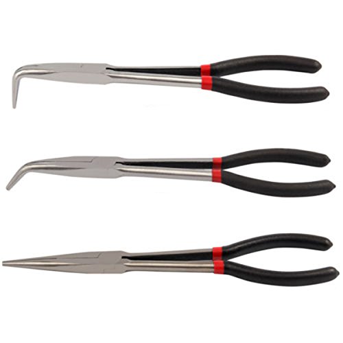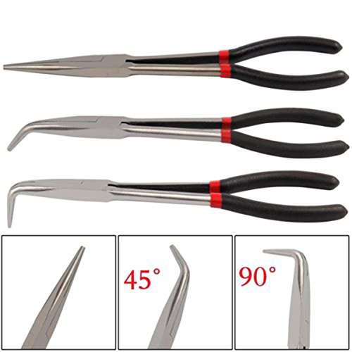 SODIAL 3 x 11インチエクステンションロングペンチストレート&曲がった先端メカニックグリップハンドツール