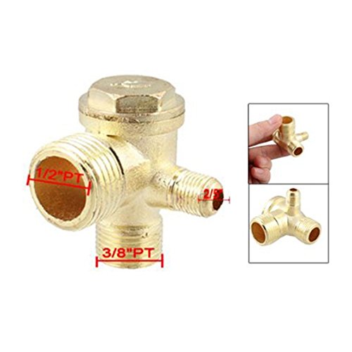 SODIAL 2/5インチ 3/8インチPT 1/2インチPTオスねじ3ウェイメタルエアーコンプレッサーチェックバルブゴールドトーン