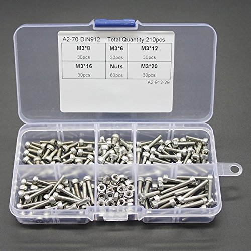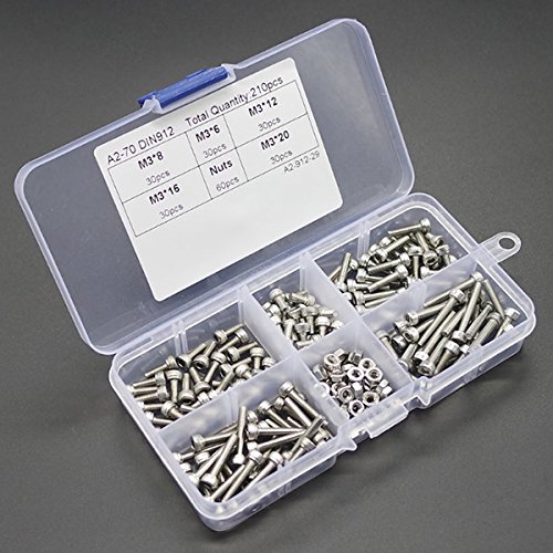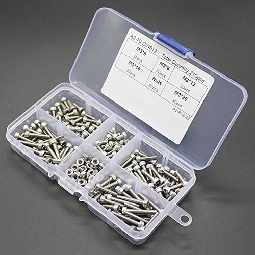 SODIAL 210個? M3 304ステンレススチール六角ソケットヘッドキャップねじナットアソートメントキットボックス付き(M3)