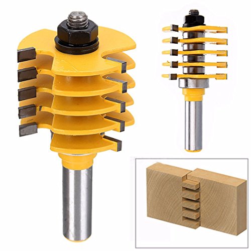 SODIAL ドリルビット木材ルータービット、ソリッドカーバイドボディ調節可能5ブレード3フルート1/2nchシャンクウッドカッター
