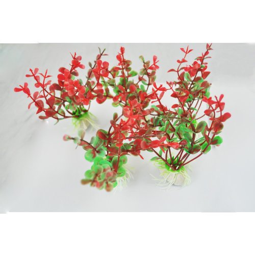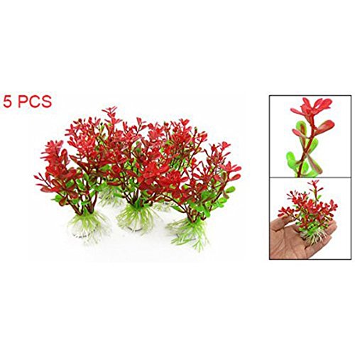 SODIAL アクアリウムのセラミックベースの赤いみどりプラスチックのインテリアの植物