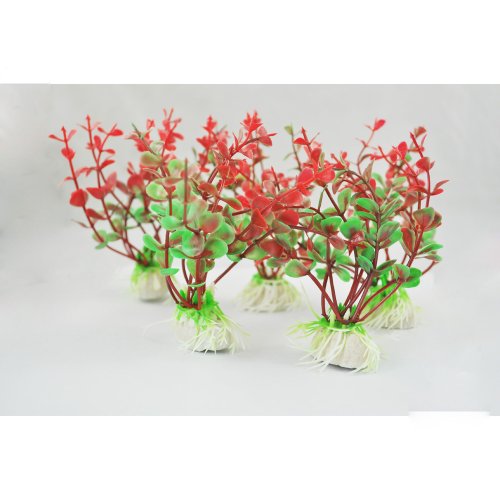SODIAL(R)アクアリウムのセラミックベースの赤いみどりプラスチックのインテリアの植物